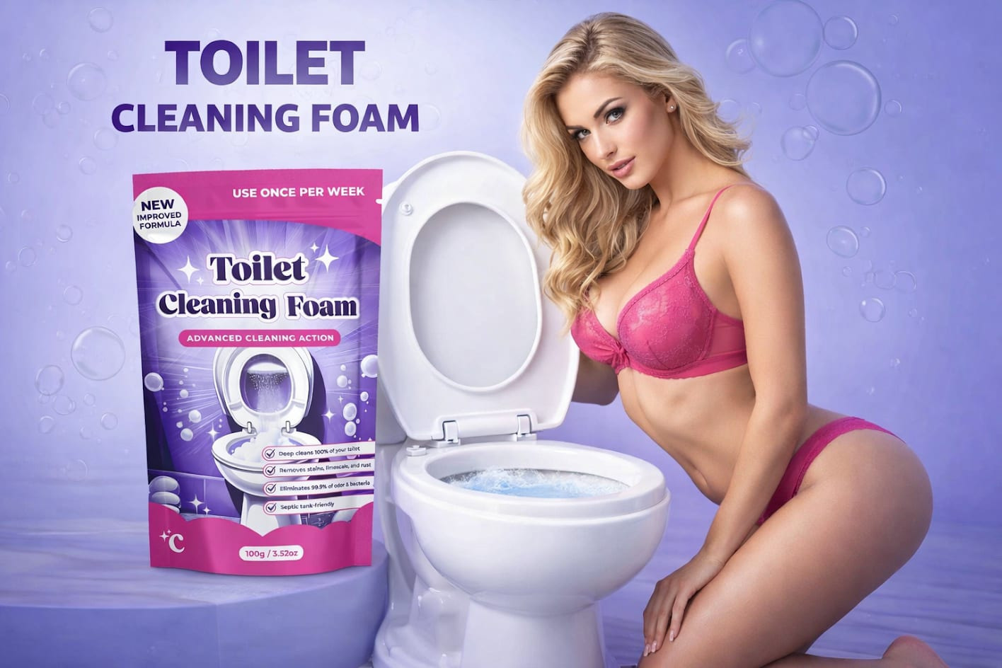 FizzClean Toilet Cleaning Foam Germany is een innovatieve toiletreiniger uit Duitsland die speciaal is ontwikkeld om hardnekkige vlekken, kalkaanslag en bacteriën effectief te verwijderen zonder schrobben. Het product verandert in een krachtig schuim zodra het in contact komt met water, waardoor het diep in de toiletpot kan doordringen en vuil losmaakt.